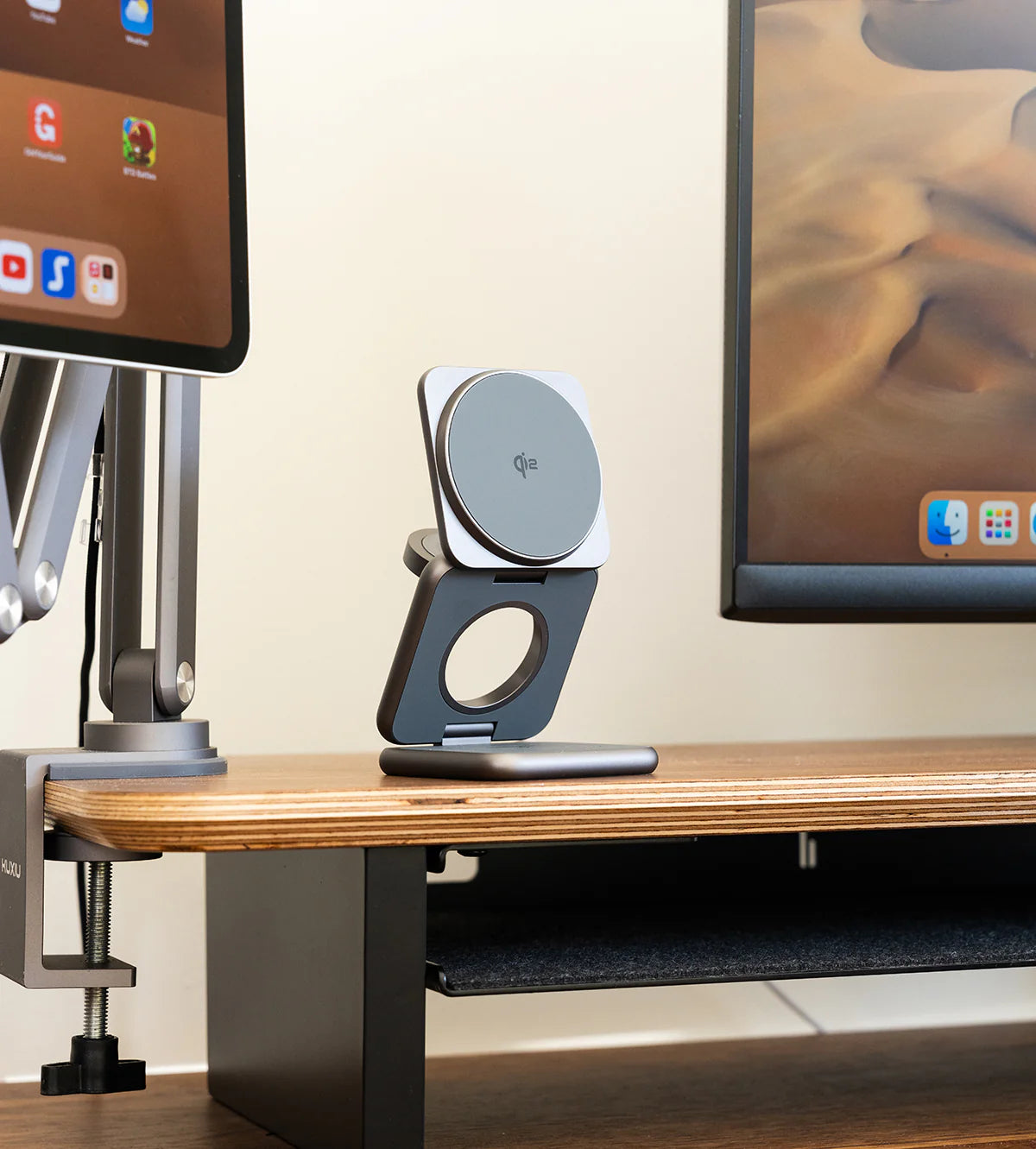 Qi2-certified, it fast-charges your iPhone, Apple Watch, and AirPods with MagSafe. Crafted from aluminum alloy, it’s ideal for travel and home use, saving space in your bag and on your desk.
